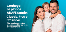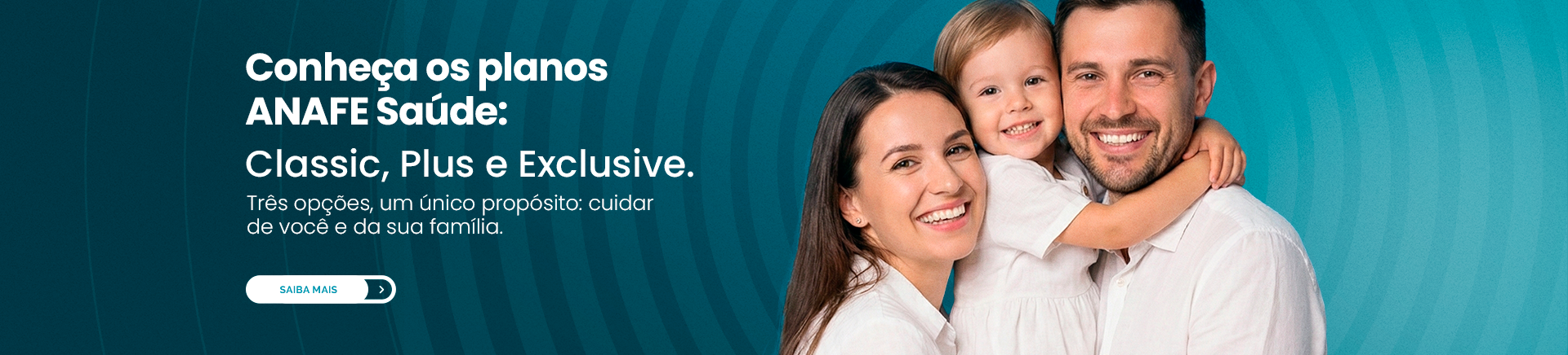 10 de dezembro 2025Conheça os planos da ANAFE Saúde: Classic, Plus e Exclusive. Três opções, um único propósito: cuidar de você.