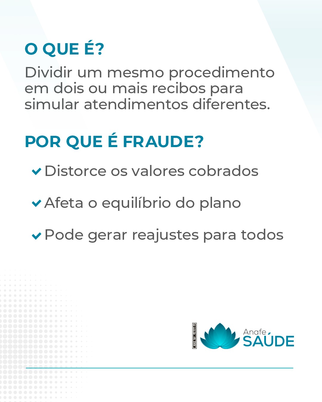 Dividir um mesmo procedimento em vários recibos para simular atendimentos diferentes é considerado fraude. Essa prática distorce os valores cobrados e prejudica o equilíbrio do plano, podendo impactar nos custos para todos os beneficiários.