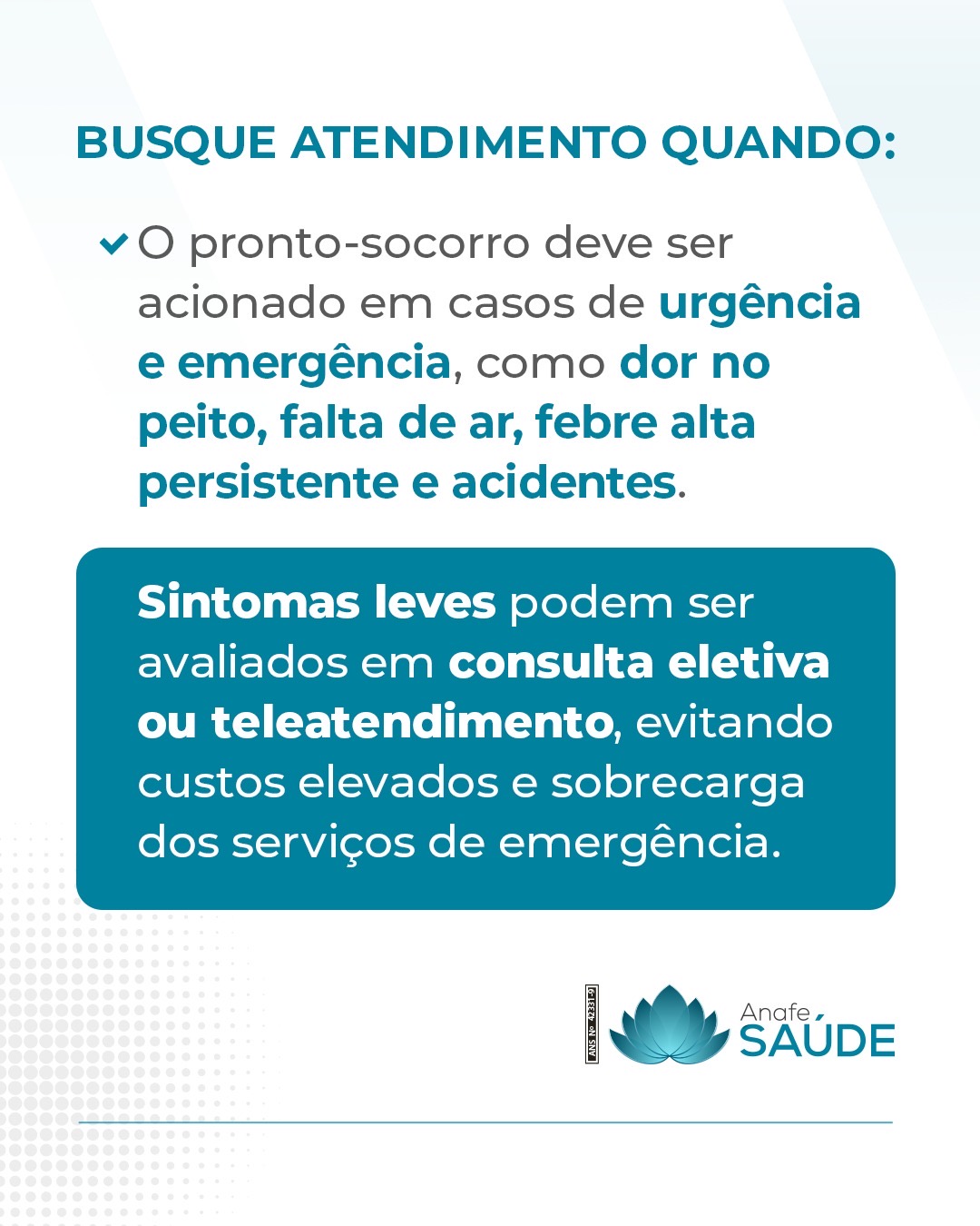 #ANAFESaúde #UsoRacionalDoPlano #ProntoSocorro #AutogestãoEmSaúde #CuidadoColetivo